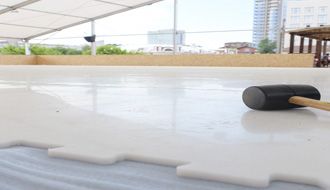 Каток из синтетического льда состоит из панелей, соединенных между собой с помощью специальных креплений. Низкая температура или солненчое излучение не влияют на свойства синтетического льда INKULEN PE 500 ICE (проверено в диапазоне температур от минус 65 до плюс 75 градусов по Цельсию).