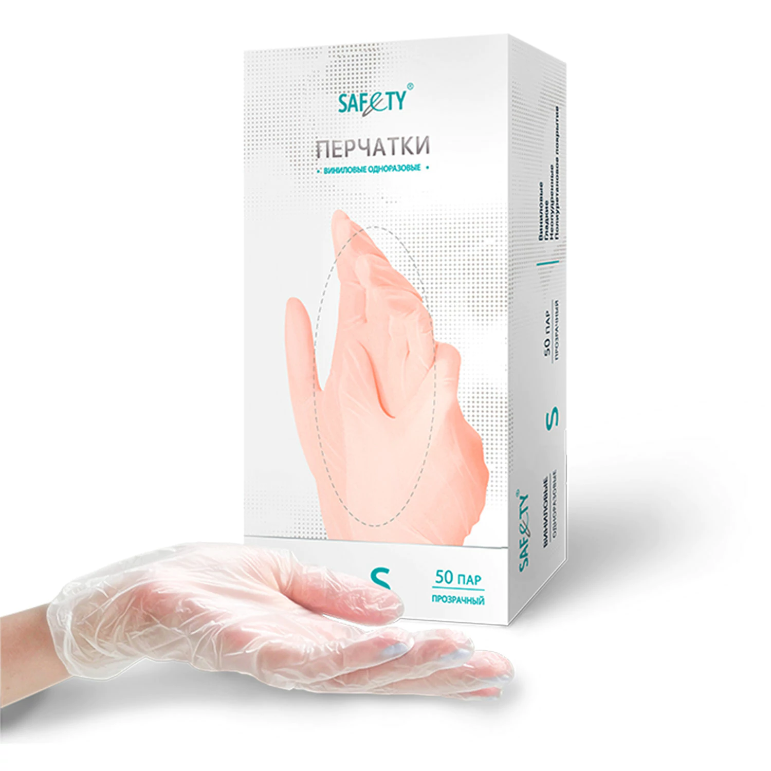 Перчатки SAF&TY виниловые используются для хозяйственных работ и медицинских процедур, при контакте с продуктами питания.